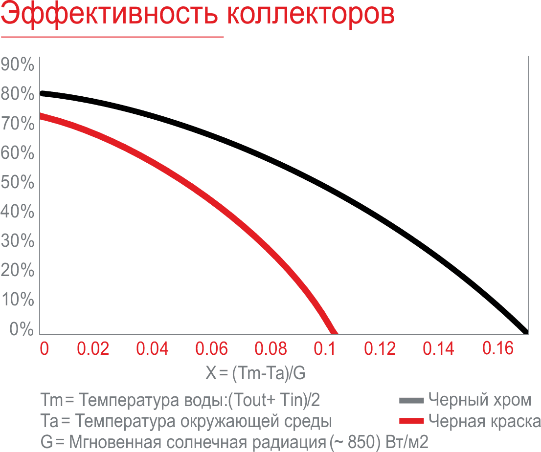 Пластина поглотителя покрыта специальным высокоселективным покрытием с выборочной солнечной расцветкой, обеспечивающей высокий эффект при воздействии солнечной энергии. Это также обеспечивает превосходное поглощение энергии даже в холодном климате.